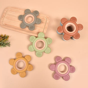 Baby Teether Forest Rudder Silicone Rattle & Flower Cartoon Ring for Infants