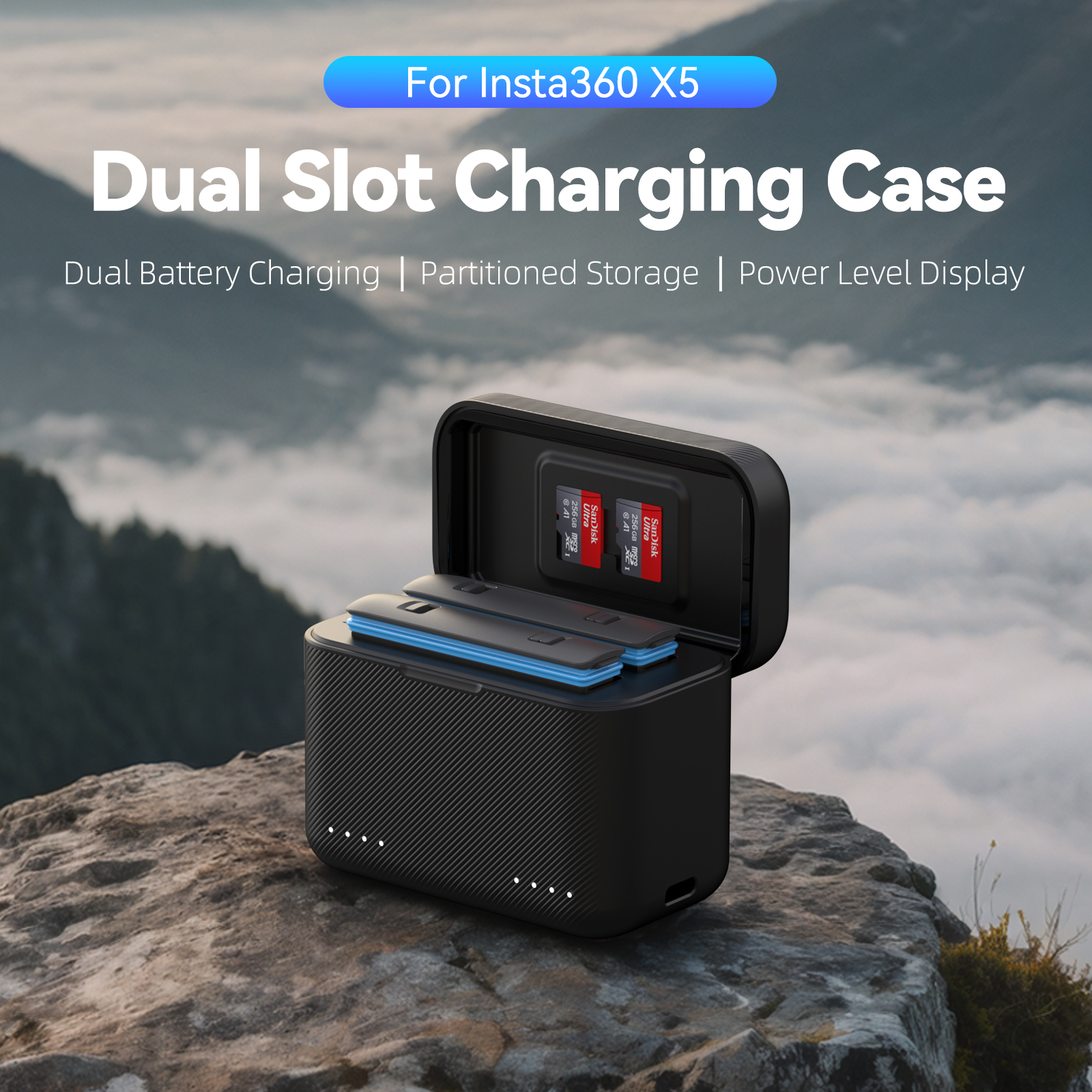 Whether you’re climbing mountains, shooting time-lapses, or recording action footage, this dual slot charger ensures your Insta360 X5 never misses a beat. It’s not just a charger — it’s your portable power solution, designed to keep your creative momentum going strong.