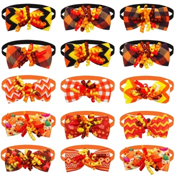 50pcs Thanksgiving Fall Dog Bowties – Adjustable Orange Collar for Pets