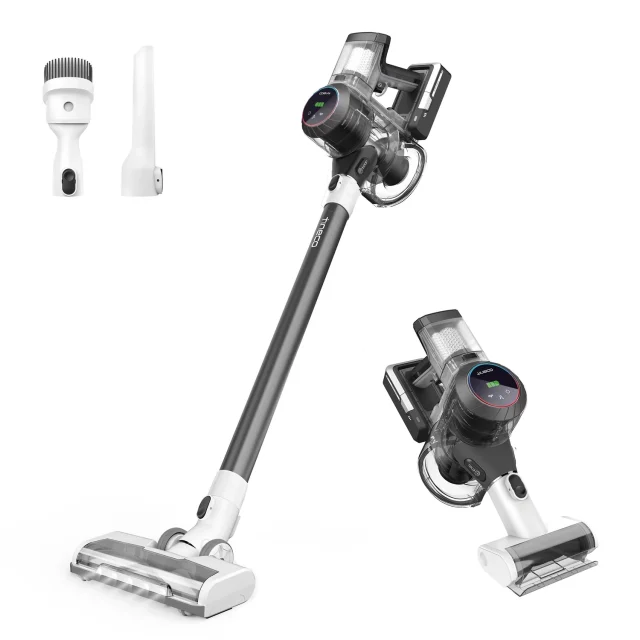 Equipped with a high-performance digital motor delivering 130W of suction, this vacuum easily lifts dirt, debris, and pet hair from hard floors, carpets, and upholstery. Despite its strength, it operates quietly, so you can clean without disturbing family or pets. The lightweight cordless design makes it easy to maneuver, and it quickly converts into a handheld vacuum for cleaning stairs, cars, furniture, and other hard-to-reach areas.