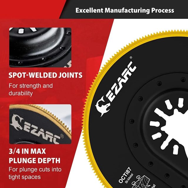 Each blade is crafted from high-quality alloy steel with a strong bi-metal design, reinforced by a titanium-coated finish that resists wear and heat buildup. The semi-circle segmented edge allows for controlled, accurate cutting in tight spaces — perfect for flooring, trim, drywall, or removing old nails and screws. With a quick-release universal fit, these multitool blades attach easily to most major oscillating tools, so you can switch tasks effortlessly without slowing down.