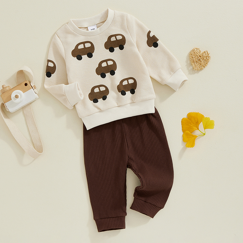 This outfit combines style, function, and comfort — everything parents look for in baby clothes. The playful car print brings a cheerful charm, while the soft waffle texture keeps your toddler cozy during outdoor strolls or indoor playtime. Lightweight yet warm, it’s perfect for layering as the seasons change. Whether it’s for casual days, travel, or special moments, your little boy will always look and feel his best.