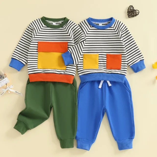 Dress your little one in style and comfort with this adorable 2-piece toddler boys outfit featuring a soft, long-sleeve striped pullover and matching solid-color pants. Designed for playful days and cozy evenings, this set perfectly balances fashion and function, keeping your toddler comfy while looking irresistibly cute.