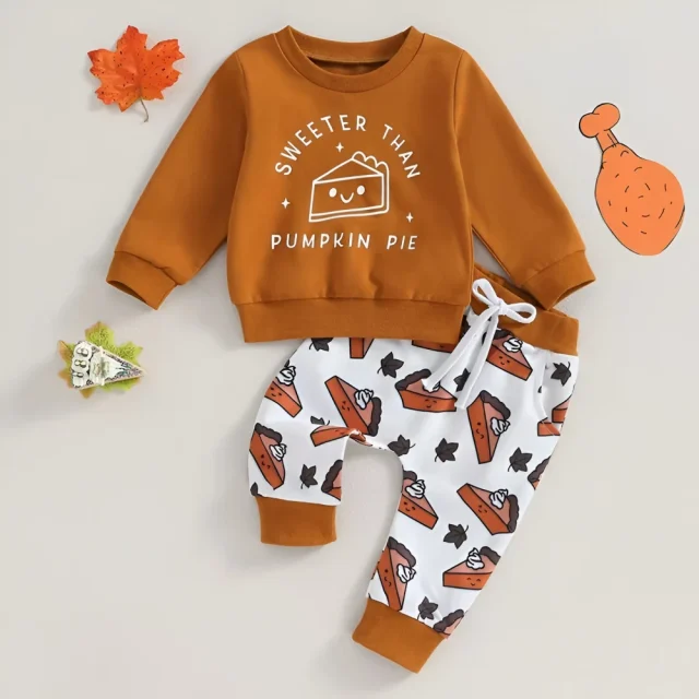 What makes this outfit special? It’s the perfect combination of holiday cheer and snuggly comfort. The playful pie print celebrates the spirit of the season, while the soft fabrics keep your toddler happy and cozy all day long. Every detail is designed with love, ensuring your little one looks adorable from the first bite of pie to the last cuddle of the evening.