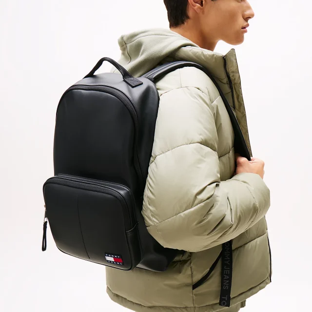Step out in style this season with the Tommy Hilfiger Jeans Men’s Black Rucksack — a perfect blend of sleek design and practical utility. Designed for the modern man, this backpack effortlessly transitions from workdays to weekend adventures. Its classic black color, premium materials, and iconic Tommy Hilfiger detailing make it an essential piece for those who value fashion and function in equal measure.