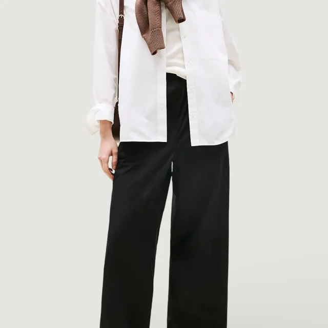 Perfect for the modern woman who values both style and sustainability, these trousers are a must-have addition to your wardrobe. Their classic black color ensures they can be easily paired with any outfit, making them an excellent choice for various occasions. From casual days to semi-formal events, these trousers offer unbeatable versatility and timeless elegance.