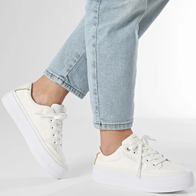 These Tommy Hilfiger Women’s White Sneakers are ideal for all your adventures. Whether you’re running errands, meeting friends, or taking a walk in the park, they provide the perfect balance of style and comfort. Their timeless design makes them suitable for both casual and semi-casual occasions, while the breathable cotton material ensures that your feet stay cool even on the warmest days.