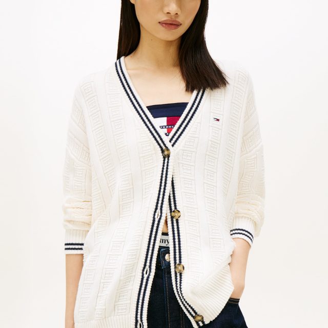 Don’t miss out on this wardrobe essential – make the Tommy Jeans Women’s White Knit Cardigan a part of your collection today and experience the perfect balance of comfort and style.