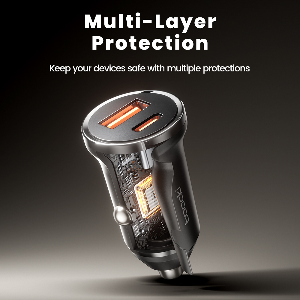 Toocki 30W Fast Charging Mini USB Car Charger PD3.0 QC3.0 Multi-Layer Protection USB Type C Car Phone Charger for iPhone Samsung