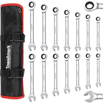 14-Piece Metric Ratcheting Wrench Set with Reversible Fixed Head