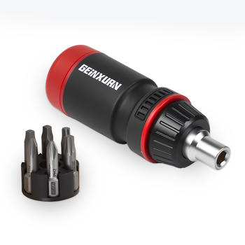 Compact Ratcheting Screwdriver Set with Hidden Bit Storage & Sockets