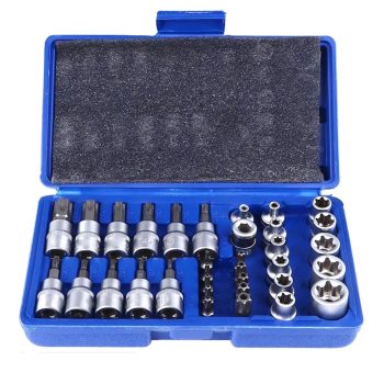 34-Piece 3/8″ Drive Tamper-Resistant Torx & E-Socket Bit Set