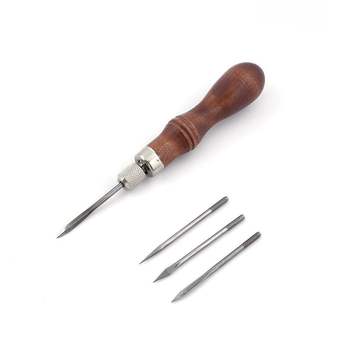 Wood Handle Leather Punch Awl with Replaceable Needles