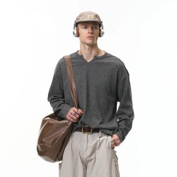 Men’s Waffle Knit V-Neck Long Sleeve Casual Tee