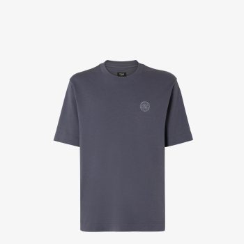 Fendi Blue Cotton T-Shirt for Men – Slim-Fit Crew Neck with FF Postcards Logo