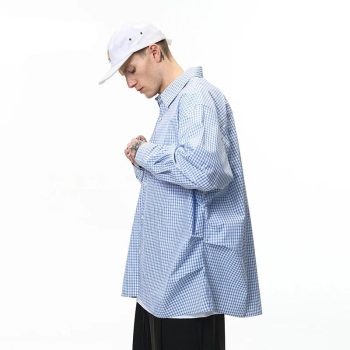 Men’s Oversized Plaid Striped Cotton Shirt for Streetwear Style