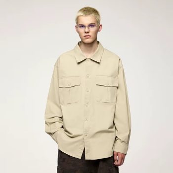 Men’s Vintage Turn-Down Collar Cotton Shirt with Pockets