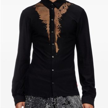 Diesel Men’s Black Long Sleeve Shirt – Cotton Blend Modern Fit
