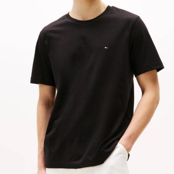 Tommy Hilfiger Men’s Black Cotton T-Shirt – Classic Round Neck, Short Sleeve