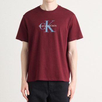 Calvin Klein Jeans Men’s Bordeaux Printed Cotton T-Shirt