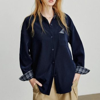 Plaid Long Sleeve Turn-Down Collar Blouse for Women