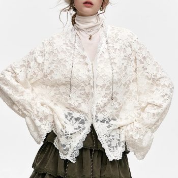 White Lace Layered Chiffon Shirt for Women – Semi-Transparent V-Neck Top