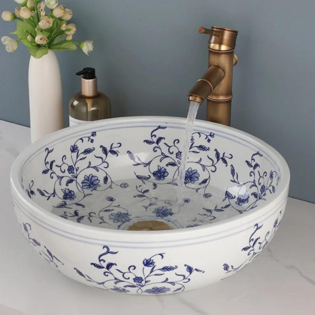 Elevate your bathroom design with this Luxury Blue and White Porcelain Ceramic Sink and Faucet Set. It’s not just a functional fixture—it’s a statement piece that reflects taste, creativity, and timeless beauty. Hand-painted details, polished gold finish, and superior craftsmanship make it the perfect blend of art and utility.