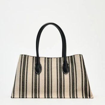 Striped Canvas Shopper Tote Bag – Large Fashion Shoulder Handbag for Women