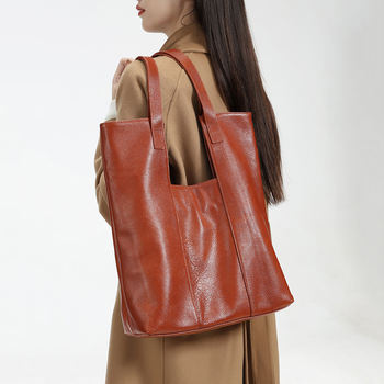 Luxury Cowhide Leather Shoulder Tote Bag – Large Capacity Handbag
