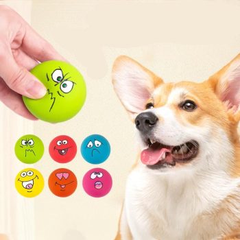 Smiley Face Latex Squeaky Dog Ball – Durable Chew Toy for Teeth Cleaning