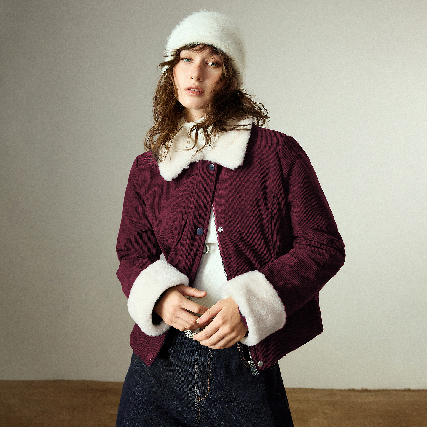 This coat stands out because it delivers warmth without sacrificing style. The blend of corduroy texture with soft fleece gives it a look and feel that’s both nostalgic and fresh. Its simple, refined silhouette pairs effortlessly with jeans, skirts, or dress pants, making it an easy winter staple. Best used during cold months, it’s the perfect choice when you want reliable warmth, soft comfort, and a polished everyday look.