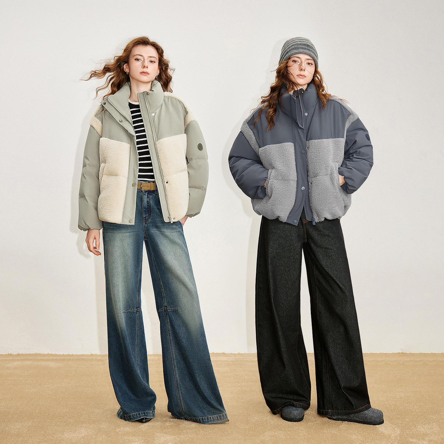 This jacket is filled with high-quality white duck down for excellent insulation while staying surprisingly lightweight. The outer layer uses durable oxford fabric combined with soft fleece spliced panels for added warmth and texture. The result is a refined winter coat that works just as well in the office as it does outside.