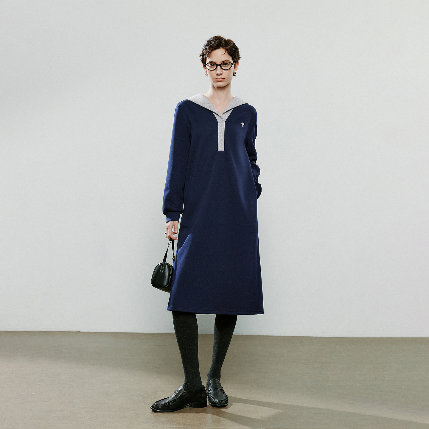 Crafted from a high-quality blend of 100% cotton and polyester, the fabric is soft against the skin yet durable enough to withstand daily wear. The sailor collar adds a sophisticated touch, while the embroidered detailing enhances the overall aesthetic with a subtle, classic charm. The asymmetric design of the dress creates a flattering silhouette, while the loose fit ensures maximum comfort, allowing you to move freely without restriction.