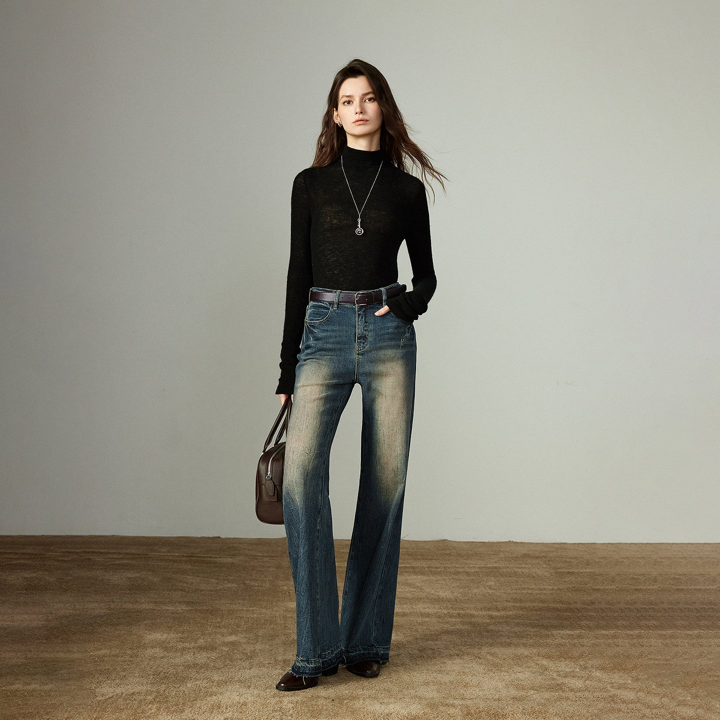 These vintage-inspired flared jeans bring a warm, nostalgic vibe with a fresh, modern feel. Designed in a unique mud-yellow ice-crack wash, they add character to your cold-weather wardrobe without trying too hard. The soft fleece lining keeps you cozy on chilly days, while the slim-through-the-hip fit with a gentle flare at the hem flatters your natural shape.