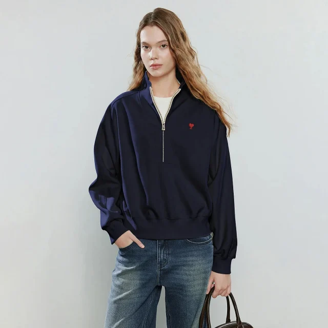 Unlike ordinary hoodies, this top features a stand turtleneck collar instead of a bulky hood, making it ideal for office wear, meetings, and smart casual days. The unique spliced zipper detail adds a modern edge while remaining subtle and elegant. Its loose fit allows for layering during cold months without feeling heavy or tight.