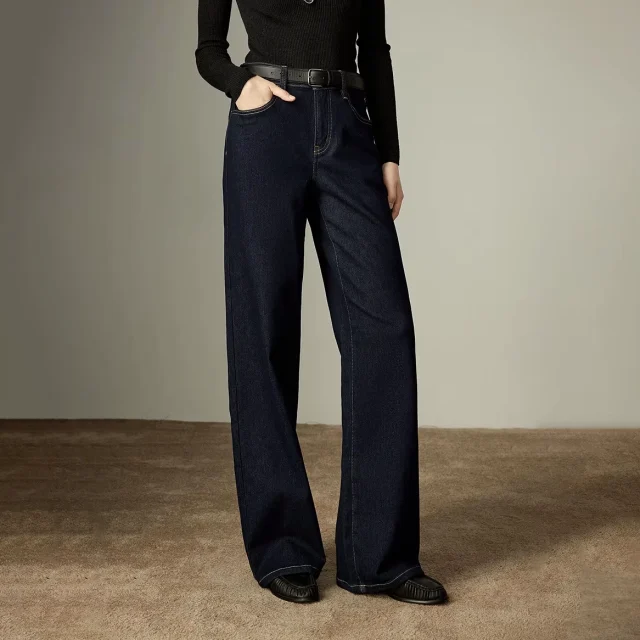 Women’s Winter Wool-Blend Wide-Leg Jeans