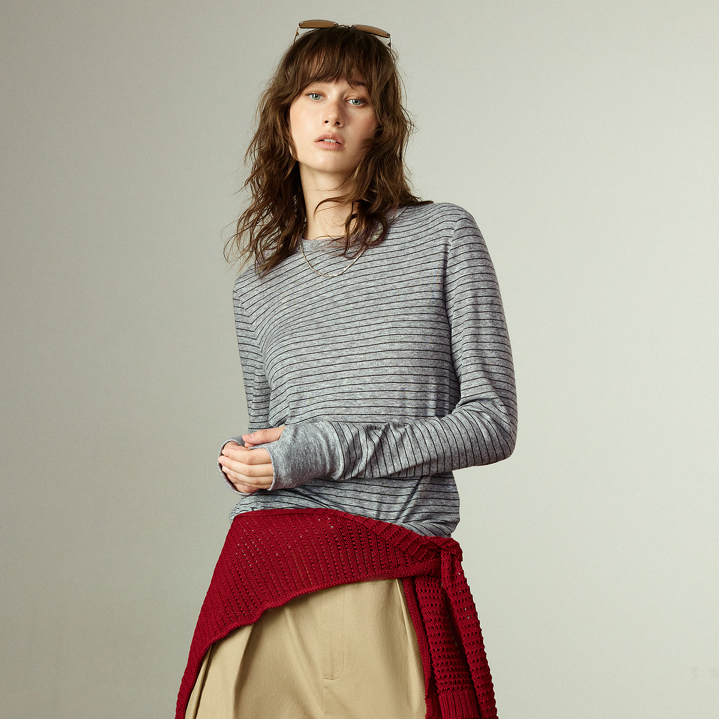 Stay stylish and warm with this chic long-sleeve crew neck top. Designed for the modern woman, this versatile piece combines timeless striped patterns with a soft, cashmere-like feel that will make you want to wear it every day. Whether you’re at the office or enjoying a casual outing, this top adds a touch of sophistication to any look. Its relaxed fit and high-stretch fabric ensure comfort without compromising on style.