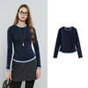 Asymmetric Color-Block Crew Neck Long-Sleeve Top for Women