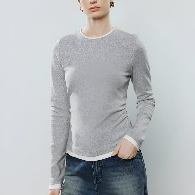 This long-sleeve top is the ultimate combination of style and functionality. The asymmetric color-block design sets it apart from basic tees, making it a standout piece for both work and leisure. Whether you’re in the office or meeting friends, you’ll enjoy the comfortable, breathable fabric that moves with you. Its slim fit and stretchable material ensure that it flatters your body shape while offering all-day comfort.