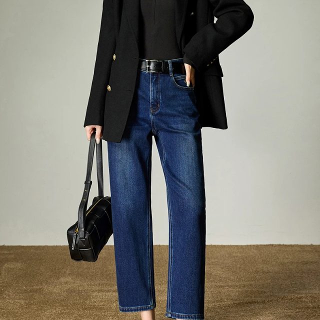 Whether you’re heading to work, meeting friends for coffee, or enjoying a cozy weekend stroll, these straight denim pants adapt seamlessly to your lifestyle. The brushed interior ensures warmth, while the sleek exterior keeps your look polished. Pair with a tailored blazer for office elegance or a chunky sweater for relaxed weekend vibes. Their versatile design allows you to effortlessly transition from day to night.