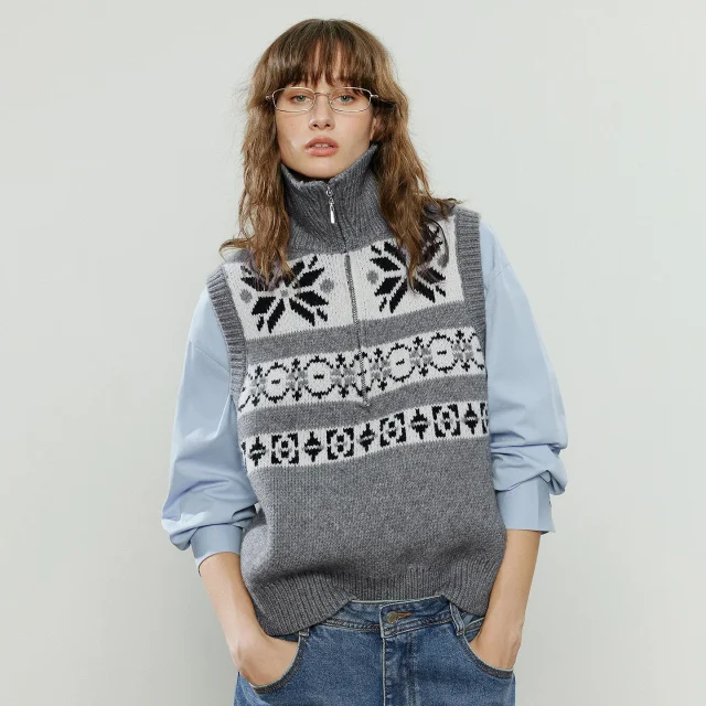 Step into the season with this chic Women’s Sweater Vest, designed to keep you warm while looking effortlessly stylish. Crafted with a soft acrylic, polyester, and polyamide blend, this vest combines comfort and durability. Its Fair Isle jacquard pattern adds a touch of classic charm, while the Arctic fleece lining ensures cozy warmth even on chilly winter days. The turn-down collar and sleeveless design make it perfect for layering over blouses, turtlenecks, or long-sleeve tops, giving your outfit a polished office-ready look or a casual weekend vibe.