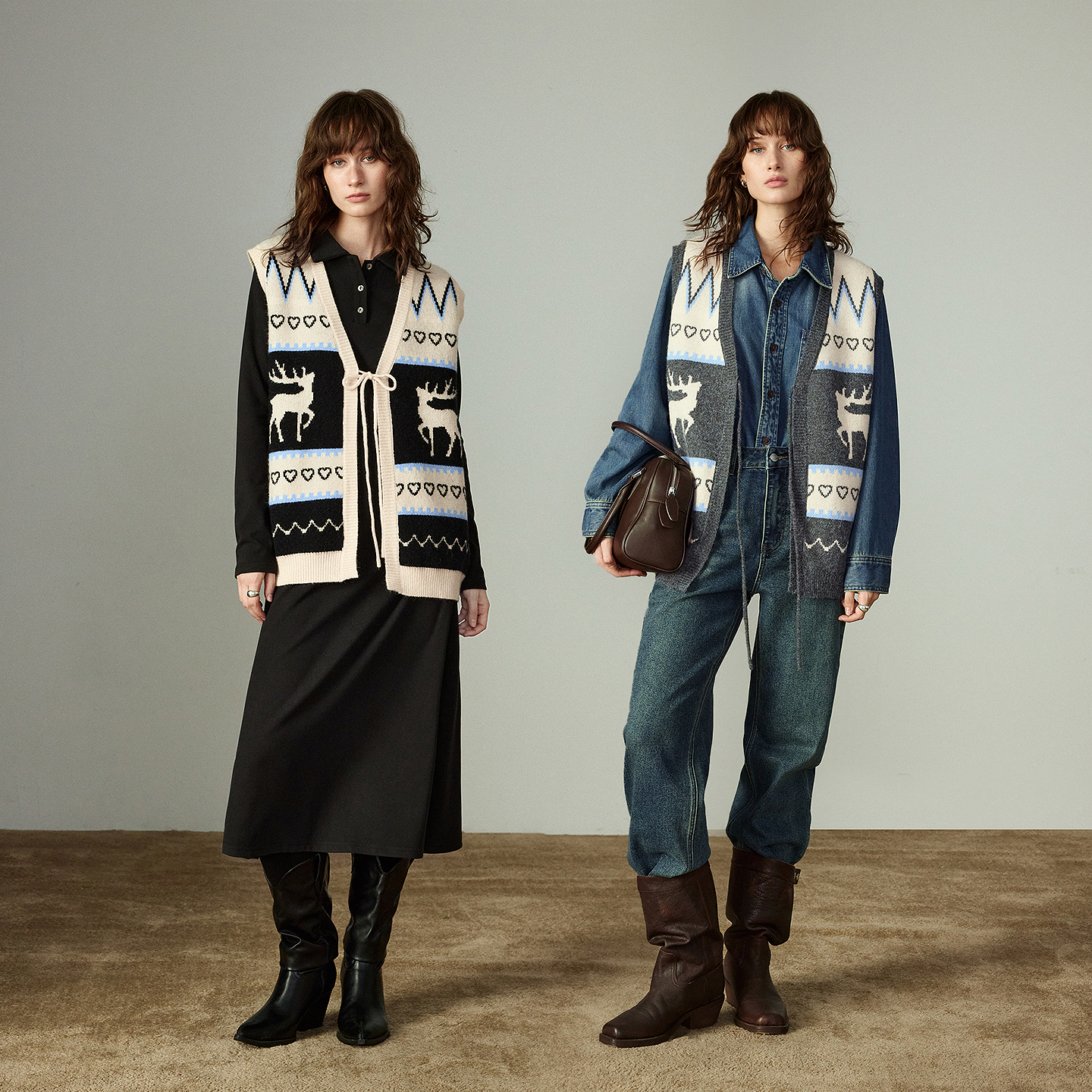 • Style: Nordic moose jacquard design with V-neck and sleeveless cut