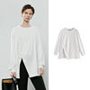 This stylish fleece t-shirt is the ultimate combination of fashion and comfort. Its asymmetrical design adds a modern twist to a classic look, making it easy to dress up or down depending on the occasion. The high-slit feature brings a trendy edge to the traditional long-sleeve style, allowing for easy movement and adding a bit of flair.