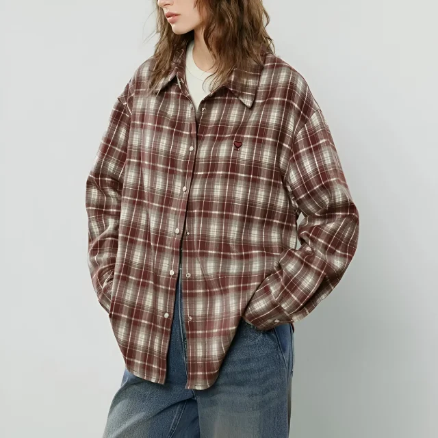 Whether you’re headed out for a weekend brunch, running errands, or simply relaxing at home, this flannel blouse is the perfect addition to your wardrobe. It’s ideal for those crisp winter mornings when you need both comfort and style. The cozy fabric and loose fit make it suitable for all-day wear, whether you’re layering it over a turtleneck or wearing it solo. This versatile blouse can be dressed up with a pair of stylish boots or dressed down with your favorite sneakers.