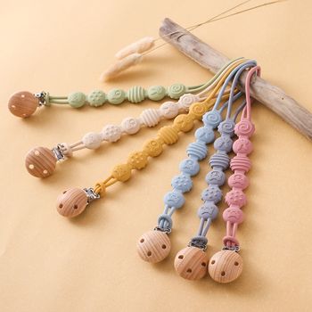Beech Wood & Silicone Pacifier Clip – Anti-Drop Baby Nipple Holder Chain