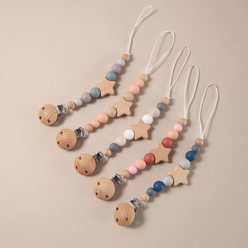 Baby Pacifier Holder with Wooden Stars & Silicone Bead Teether | Newborn Soother Chain