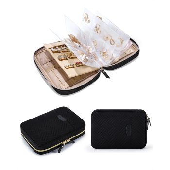 Clear Jewelry Travel Organizer Case with Ring Binder & Zipper Pouch