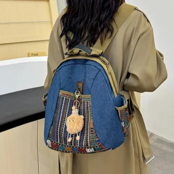 Waterproof Embroidered Canvas Backpack for Women & Students