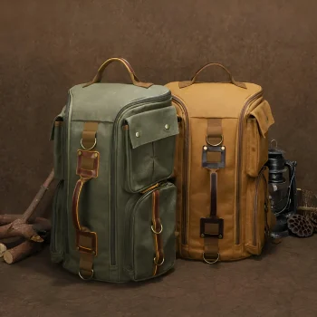 Vintage Leather 16-Inch Laptop Backpack Waxed Canvas Shoulder Rucksack for Men & Women