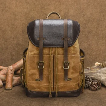 Fashion Canvas & Cowhide Waterproof Backpack for Men & Women – 15.6″ Laptop Rucksack